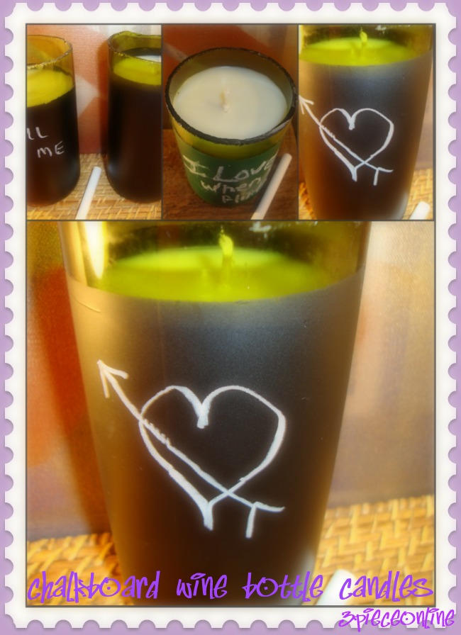 So this is the first new 3 Piece product for 2011. I am pretty geeked up about it because it involves two things that are very near and dear to my heart, wine bottles and chalkboard paint! So ladies and gentlemen I present Chalkboard Wine Bottle Soy Candles now available on www.3pieceonline.com.